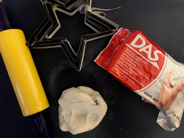 I got mine from Cowling & Wilcox in Camberwell which is local to me but you can buy from them online or get it from most craft suppliers or Amazon. I bought some star cutters from somewhere and a little craft rolling pin although I’d recommend a larger one the plastic surface is perfect for rolling clay.