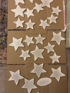 - Using a skewer make a small hole in one of the star’s points so that you will be able to thread it to hang up