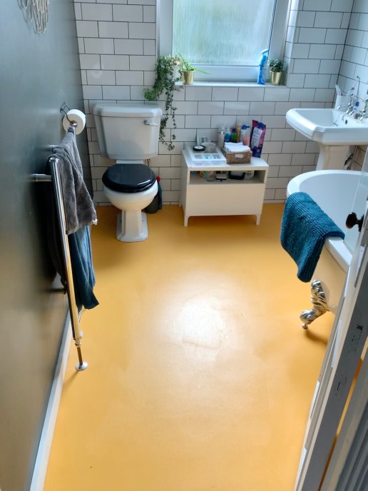 Before: Not so bad. We hadn’t got the right storage and I wanted to change the grey wall but otherwise we were quite happy with the bathroom. I gave it a thorough clean with a steam cleaner first and the floor came up beautifully.
