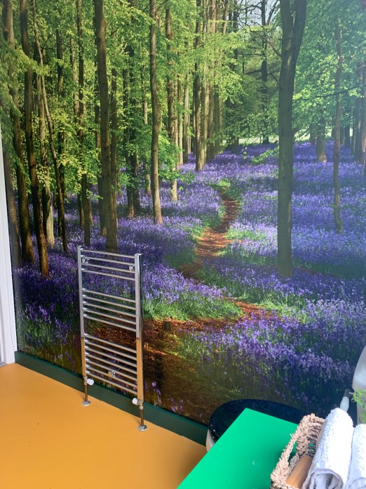 So I knew nature was the way I wanted to go. I remembered a beautiful the bluebell wood I visited with friends a couple of years ago. It was so peaceful; my eyes couldn’t get enough of the vivid purple/blue of the flowers carpeting the forest floor. I wanted to recapture that feeling so searched bluebell woods and after some debate between these two pictures from Photowall…