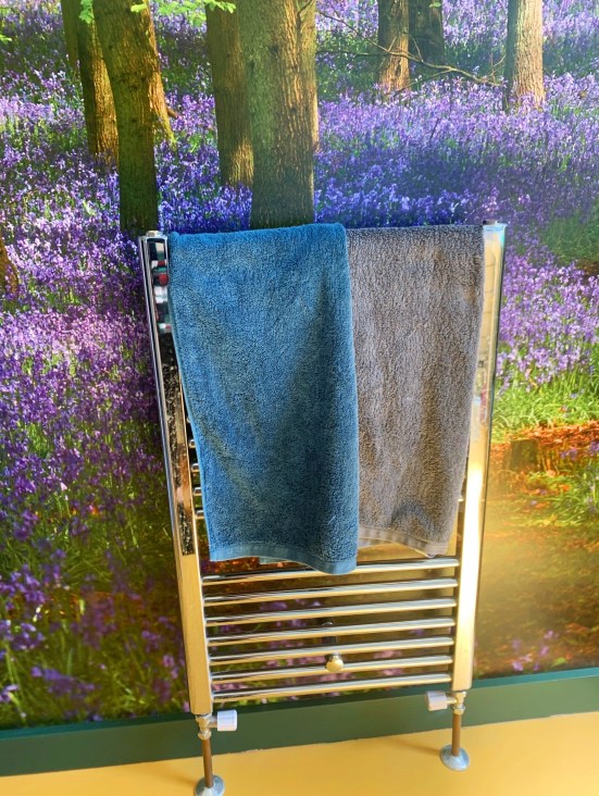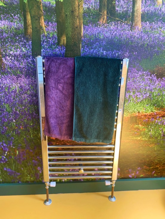 Not forgetting the towels! The colour of ours had been chosen for our previous bathroom and had looked fine with the grey wall but didn’t go now. They were in good condition so I had the brainwave to machine dye them with Dylon and am delighted with the result.