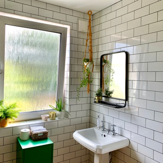The bathroom is the one room in the house that is pretty much how we want it. Sure, I might not have chosen a bathroom suite of this style and I’d prefer a mixer tap on the sink but I love the bath and the yellow floor and the tiling is in very decent nick. I even loved the (now obsolete) Ikea green cabinet the previous owners had so much that my husband tracked one down for us on ebay!