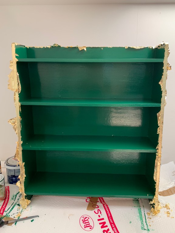 Turning this old brown bookcase into a beautiful gold and green vision was a relatively quick upcycling project. You will need: