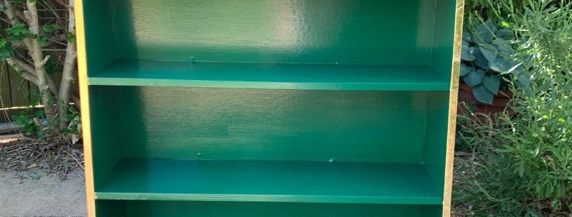 Turning this old brown bookcase into a beautiful gold and green vision was a relatively quick upcycling project. You will need: Small wooden bookcase - this one was second hand Paint of choice - Valspar Emerald Temple in premium satin Polyvine metal leaf size and crystal clear varnish Gold leaf - I get mine from … Continue reading A Touch of Gold – bookcase upcycle